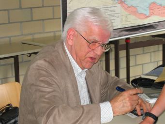 Hans Dieter Stöver, der vor allem durch seine Quintus-Triologie bekannt wurde, gelang es, die Sechstklässler mit seiner spannenden Geschichte über das jüdische Zwillingspaar Daniel und Esther, das im Jahr 70 n. Chr. aus dem brennenden Elternhaus in Jerusalem flüchten muss, in seinen Bann zu ziehen. Daniel und Esther, die bei der Flucht vor den römischen Besatzern ihre Eltern verlieren, werden in ihrem Versteck in Jerusalem entdeckt und als Kriegsbeute nach Rom verschifft, wo sie fortan als Sklaven für unterschiedliche Herren arbeiten müssen, dort aber auch schon bald in ein spannendes Abenteuer verwickelt werden. Aufmerksam hörten die Schülerinnen und Schüler dem Autor zu, der nicht nur Passagen aus seinem Roman vorlas, sondern seine Lesung immer wieder unterbrach, um den Schülerinnen und Schülern historischen Zusammenhang anschaulich zu erklären. Dabei verriet er auch, dass es nicht nur die geschichtlichen Ereignisse waren, die ihm als Grundlage für seinen Roman dienten, sondern dass er auch persönliche Kindheitserlebnisse aus dem Zweiten Weltkrieg verarbeitet habe.