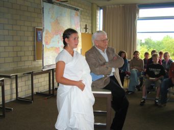 Beeindruckt hat die jungen Zuhörer besonders die Art und Weise, wie es Stöver mit Hilfe seiner Stimme gelang, die historischen Figuren wie z.B. den Tyrannen Nero oder den im Roman vorkommenden Kaiser Vespasian zum Leben zu erweckten, indem er immer wieder spontan kleine dialogische Begebenheiten in seine Ausführungen einstreute, die sich so oder so ähnlich zugetragen haben könnten. Damit demonstrierte er seinen Zuhörern auch, wie er sich als Schriftsteller einem solchen gewaltigen Romanstoff nähert.