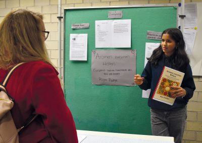 Für besonders leistungsstarke Schülerinnen und Schüler ist am Gymnasium Puchheim mit dem Drehtürmodell eine Plattform eingerichtet, die ihnen dabei hilft, ihre außergewöhnlichen Begabungen bestmöglich individuell zu entfalten und großartige Projekte durchzuführen, die das Schulleben sichtbar bereichern. Am 6. Oktober 2025 präsentierten die Teilnehmerinnen und Teilnehmer des Schuljahres 2024/2025 eindrucksvoll ihre Ergebnisse auf der Bühne in unserer Aula. Danach konnten alle Anwesenden die Projekte im Detail in den eigens dafür aufwändig gestalteten Räumen bestaunen.